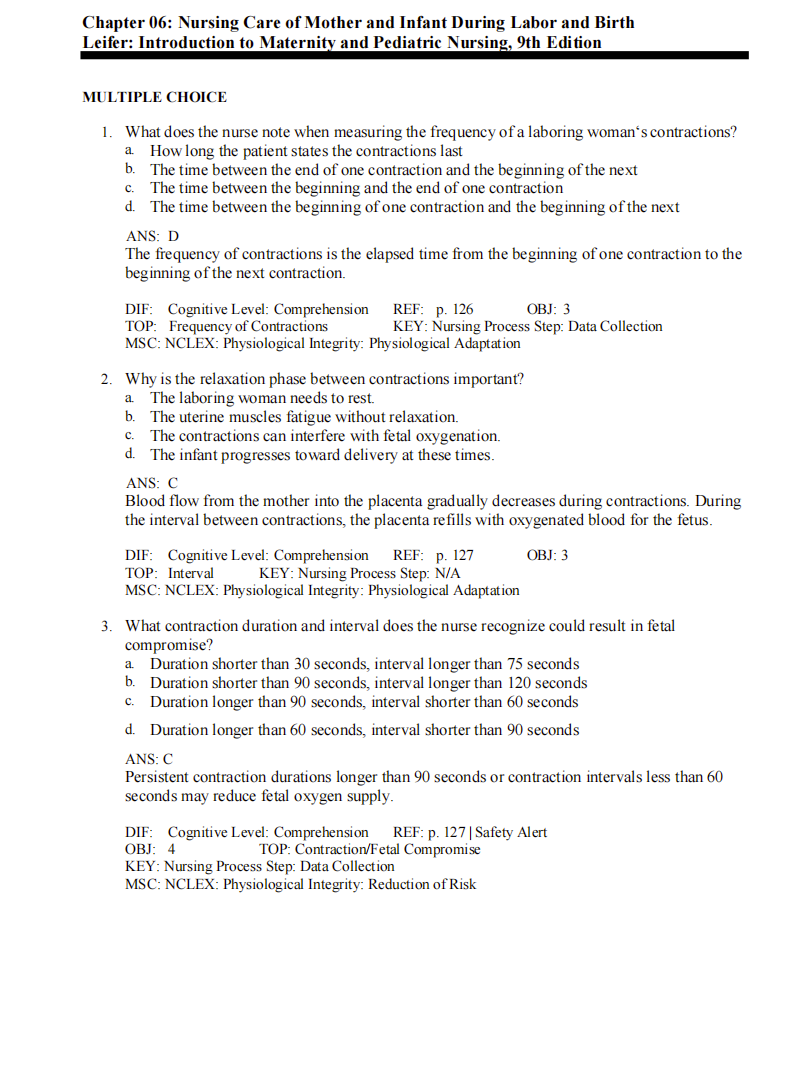Test Bank Introduction to Maternity and Pediatric Nursing 9th Edition