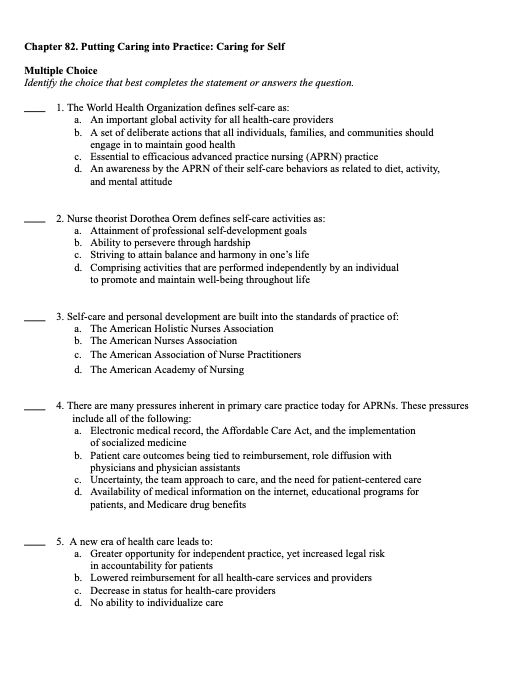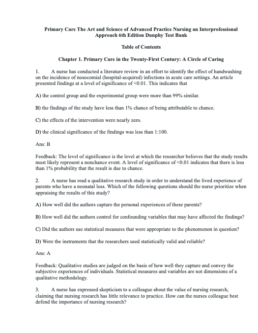 Test Bank Primary Care: The Art and Science of Advanced Practice Nursing – an Interprofessional Approach 6th Edition by Dunphy